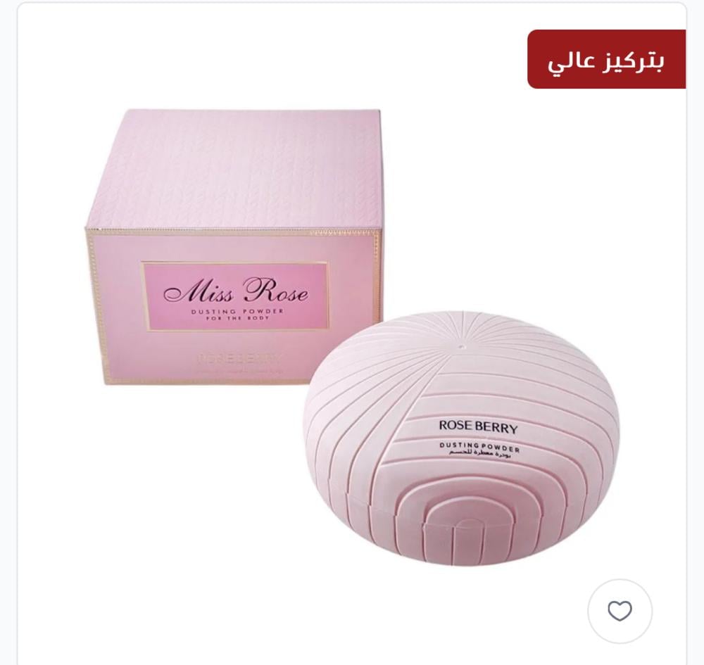 اكتشفي الفخامة والأناقة مع بودرة الجسم المعطرة بتركيز عالي من روز بيري. هذه البودرة الفاخرة تمنحك تجربة عطرية لا تُنسى مع لمسة من الانتعاش والنعومة تدوم طوال اليوم.