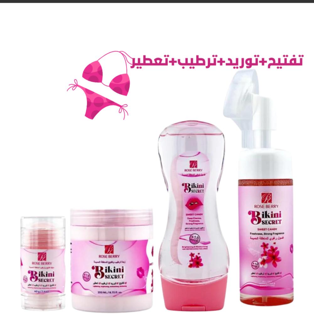 محتويات المجموعة 1- غسول رغوي للمنطقة الحساسة 2- سائل ملطف منظف للبشرة الحساسة 3- رول أون للتفتيح والترطيب ورائحة تدوم 4- زبدة البيكيني باتر للتفتيح والترطيب العميق