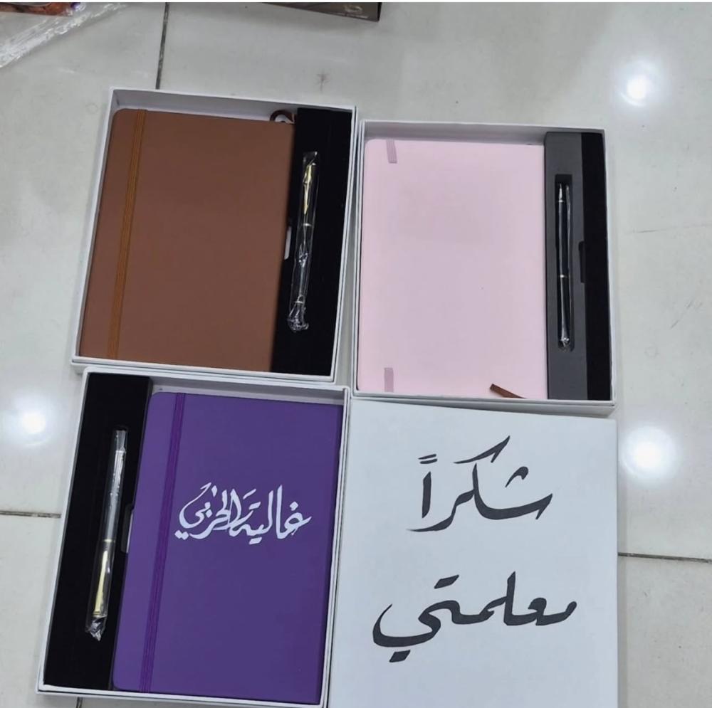 هدية يوم المعلم نوته مع قلم السعر للدرزن 12 حبه مع كتابة الاسم او استكر